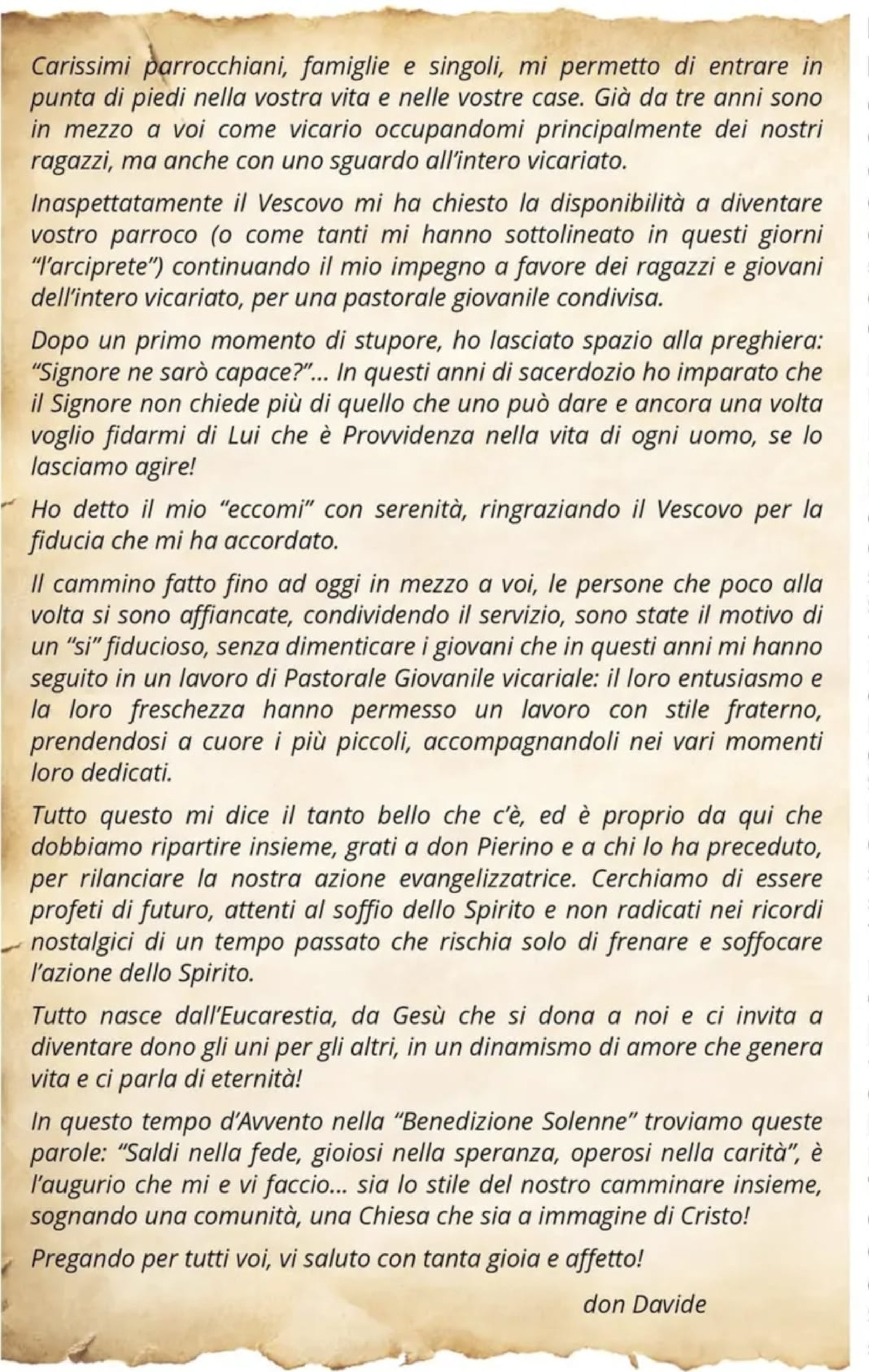 Don Davide ParrocoLunedì, 22 dicembre 2025