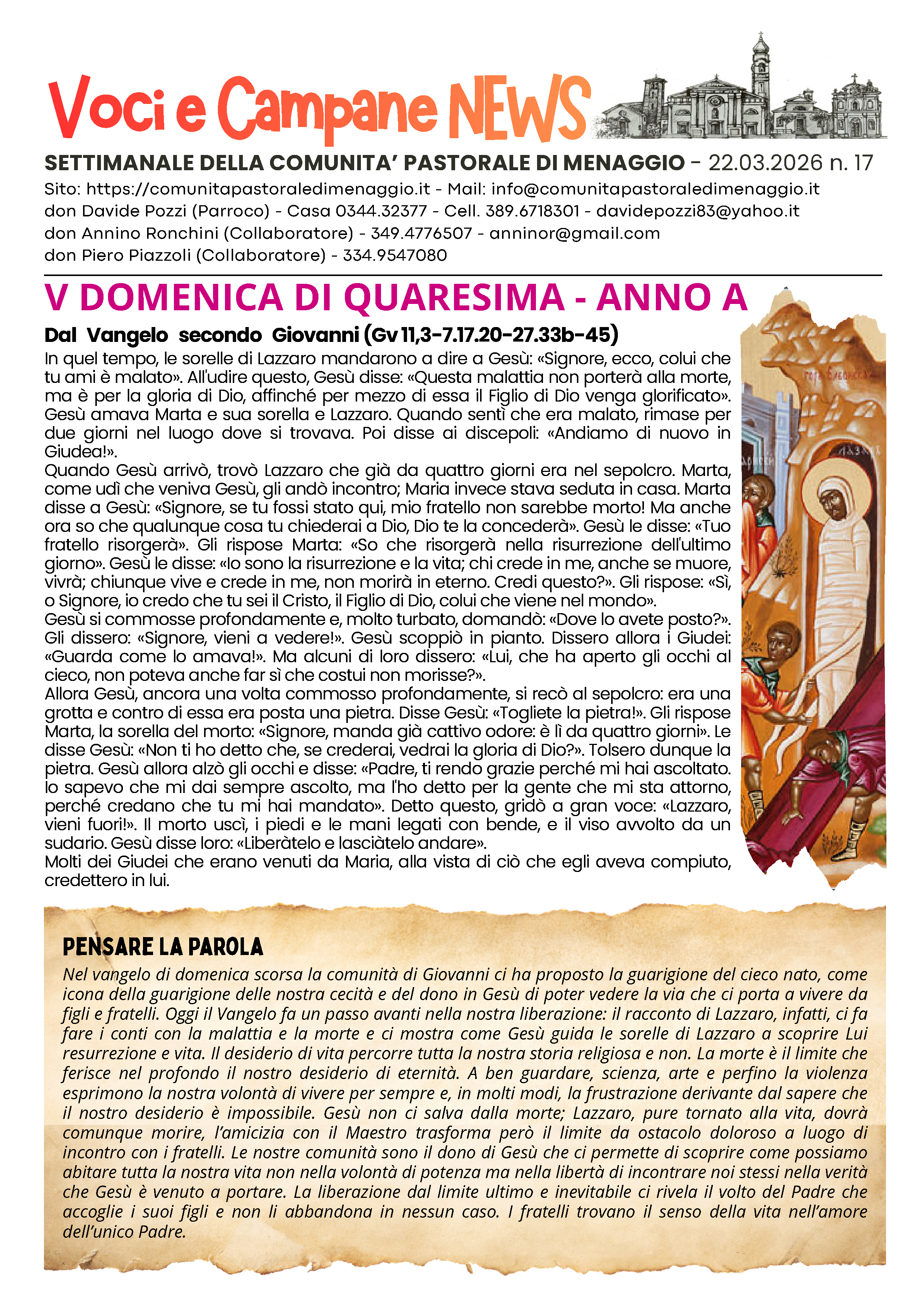 Voci e Campane News n° 17 - pagina 1Domenica, 22 marzo 2026