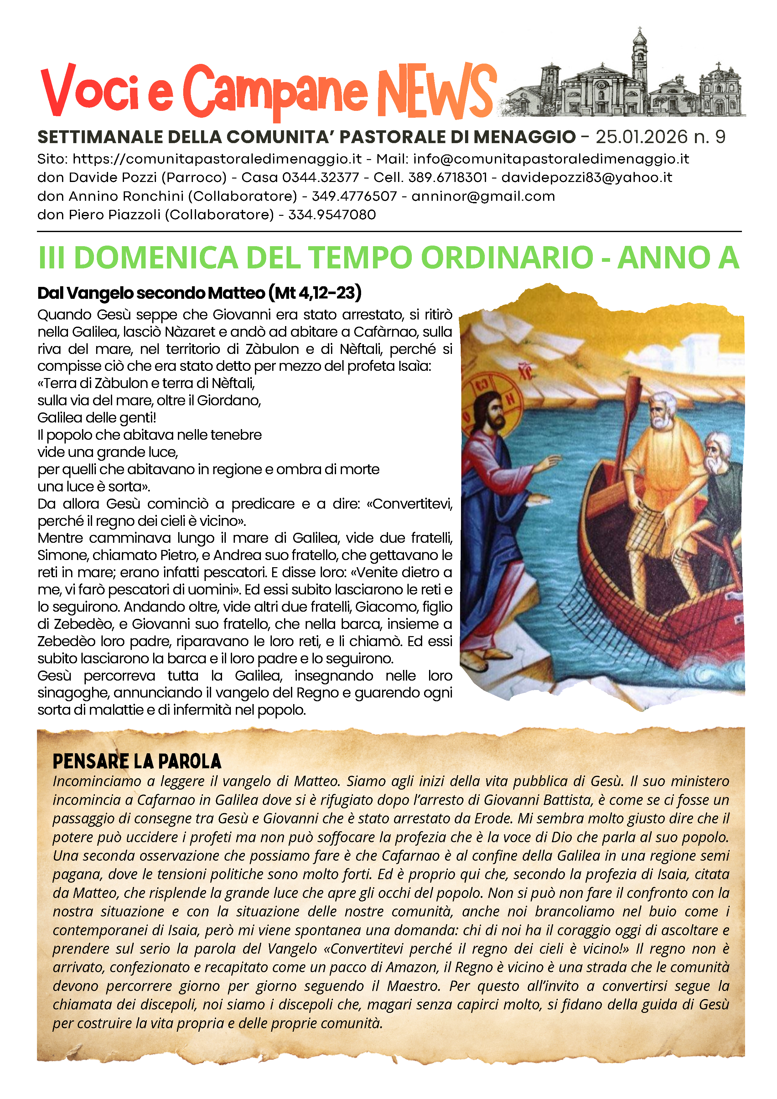 Voci e Campane News n° 9 - pagina 1Domenica, 25 gennaio 2026